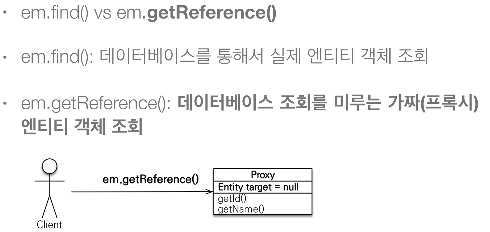 하지만 하나의 트랜잭션 안에서는 find 와 Reference 비교를 하게 되면 == 으로 비교해도 똑같다. -> proxy 가 아닌 실제 엔티티 반환