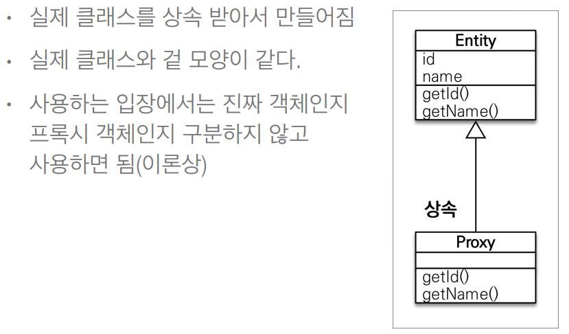 ※ 프록시는 실제로 사용하는 경우는 많지 않지만 즉시 로딩과 지연 로딩을 이해하기 위해서 필요한 과정.