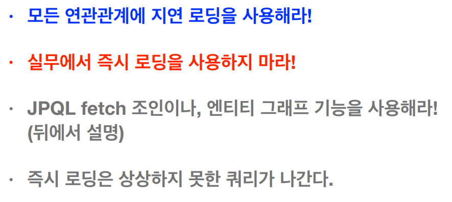 실행 즉시 Proxy 가 아닌 테이블 간의 join 을 통해 쿼리문을 날려서 실제 값을 출력한다.