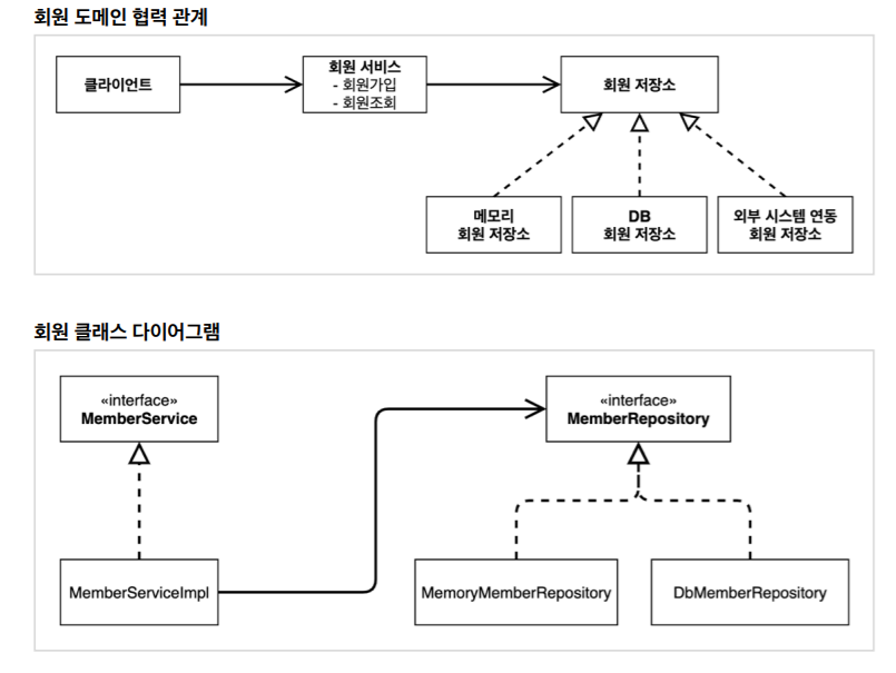 -> MemberRepository 는 저장소에 넣는 과정. MemberService 는 회원가입을 누를시에 동작하는 개념.