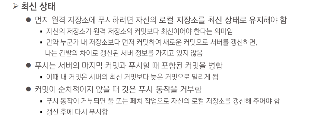 다른 사람과 협업 중에 push 를 진행하려면 내 저장소의 상태가 항상 최신이어야 한다.