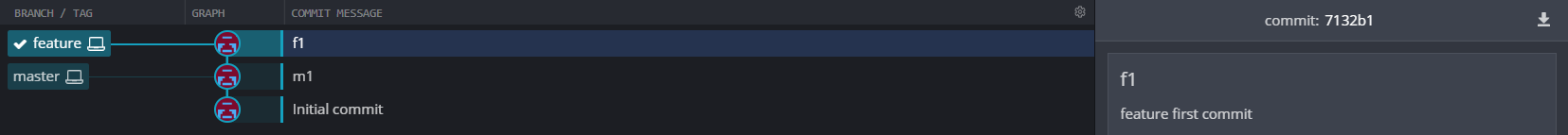다음과 같이 feature 브랜치에 커밋이 생성됐음을 확인할 수 있습니다.