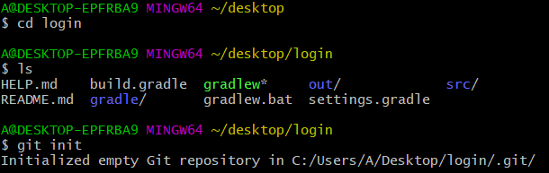 저의 경우 , login 이라는 프로젝트에서 git init 으로 저장소를 생성했습니다.