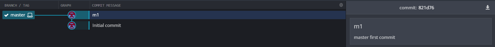 저 같은 경우 , m1-master first commit 으로 commit 메시지를 작성해주었고 그 결과 해당 커밋을 누르면 커밋 아이디와 함께 커밋 메시지가 나타나게 됩니다.