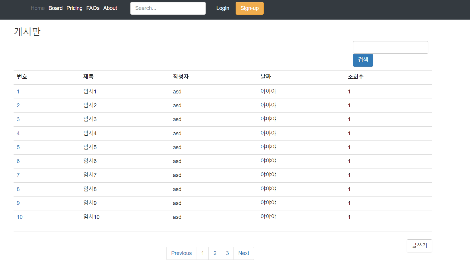 게시판도 동일하게 Bootstrap 을 이용해서 UI 를 그리고,