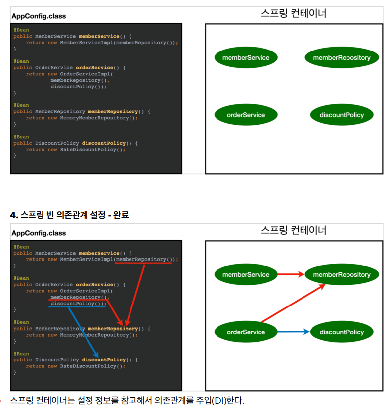 기존의 DI컨테이너(AppConfig)는 순수한 자바코드로 의존성을 주입했었다. 이제부터는 스프링을 이용하여 의존성을 주입하겠다.