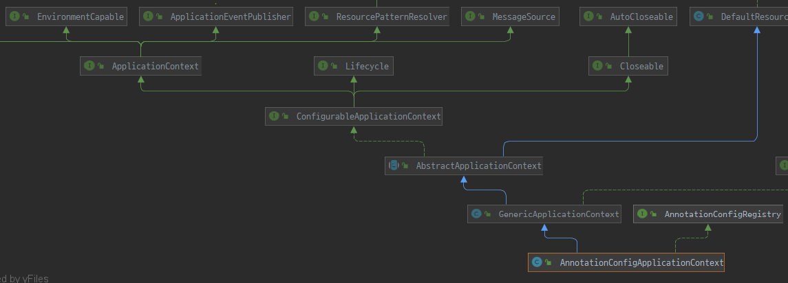 AnnotationConfigApplictaionContext 는 위 그림에서 볼 수 있듯이 ApplicationContext 의 상속관계이다.