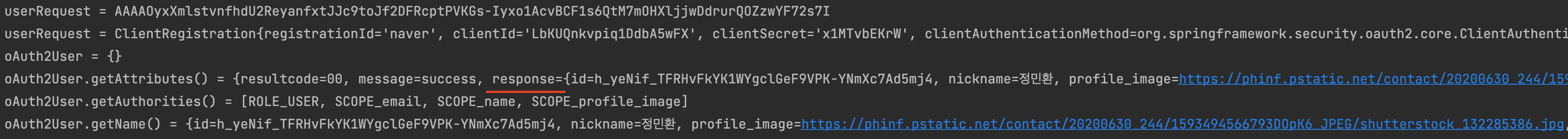 System.out.println("oAuth2User.getAttributes() = " + oAuth2User.getAttributes());